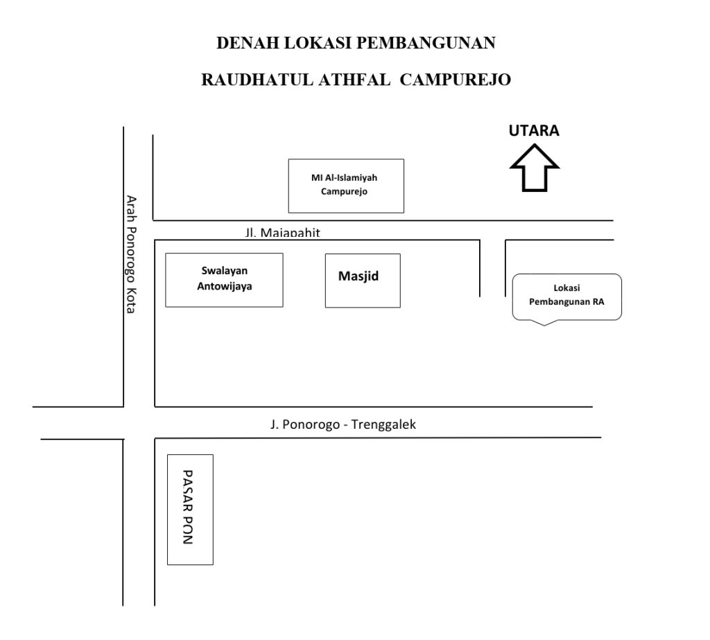 Lokasi PembangunanLokasi pembangunan gedung RA Al-Jawahiriyyah adalah Desa Campurejo, Kecamatan Sambit, Kabupaten Ponorogo, Provinsi Jawa Timur. Pembangunan dilaksanakan pada tanah wakaf seluas 275,48 M² dengan Nadzir wakaf Bapak Sabaruddin, S.H (Mantan Ketua MWC NU Sambit). Post Views: 91